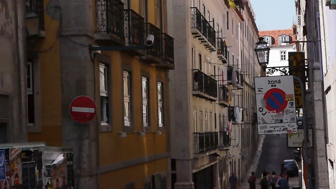 Filma-se a cidade de uma maneira imparcial esquecendo os habituais enquadramentos ou os grandes planos, dando liberdade à câmara para filmar o quer que seja que apareça à sua frente e dessa forma, filma-se o fora de campo, aquilo que habitualmente não se filma. E o que aparece à frente da câmara é uma cidade construída pelas pessoas, construída para as pessoas, mas com a ausência delas. Elas não estão lá, são vultos. É uma outra maneira de filmar a cidade de Lisboa.